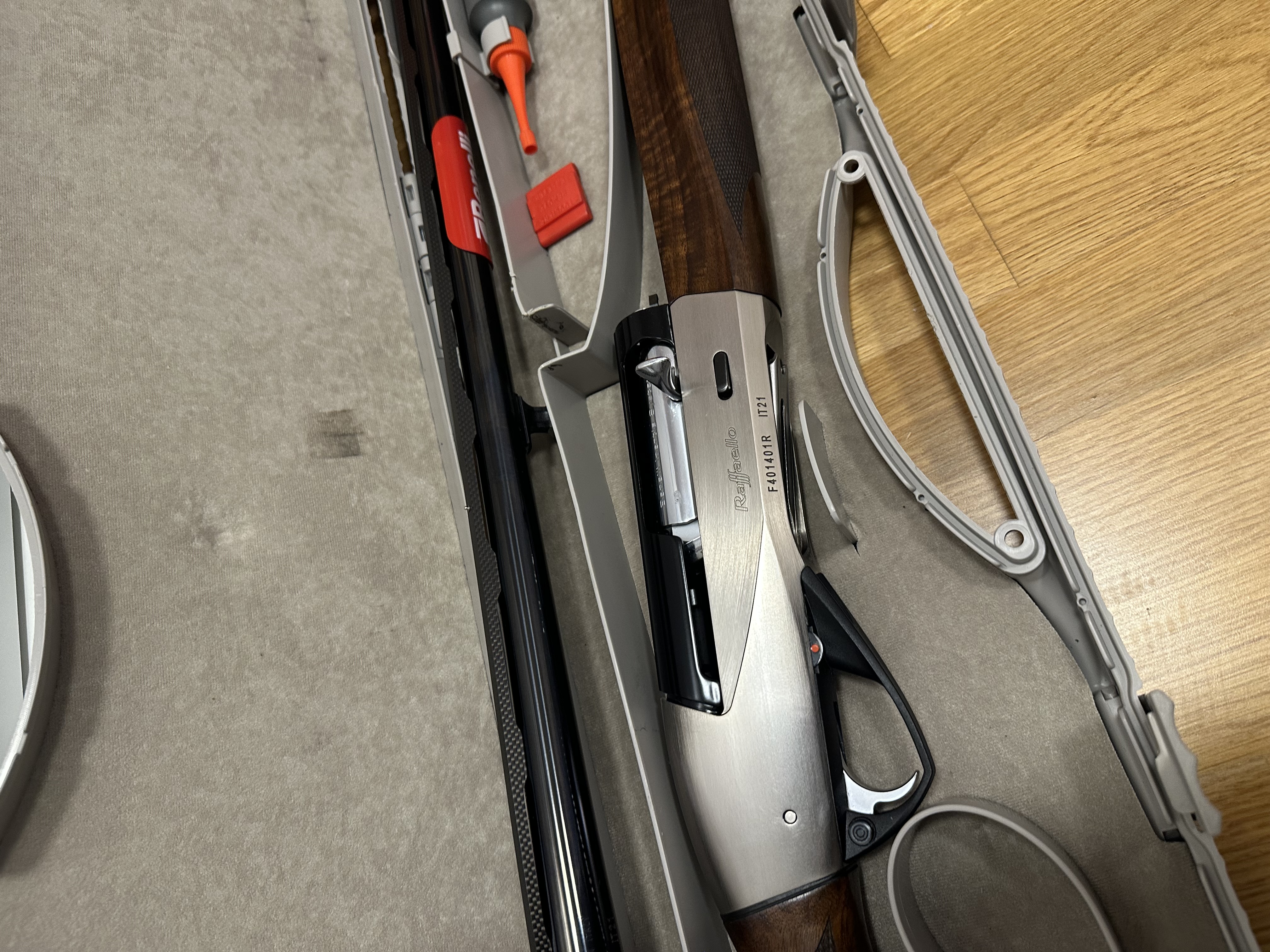 Benelli raffaello powerbore calibre 12. Cañón de 71cm. Años 2022, usada 3 temporadas, no ha tirado ni 100 tiros. Con su maletín, accesorios y polichoques todos sin estrenar menos uno. La escopeta está nueva. Se puede enviar a cualquier intervención de armas de la península.