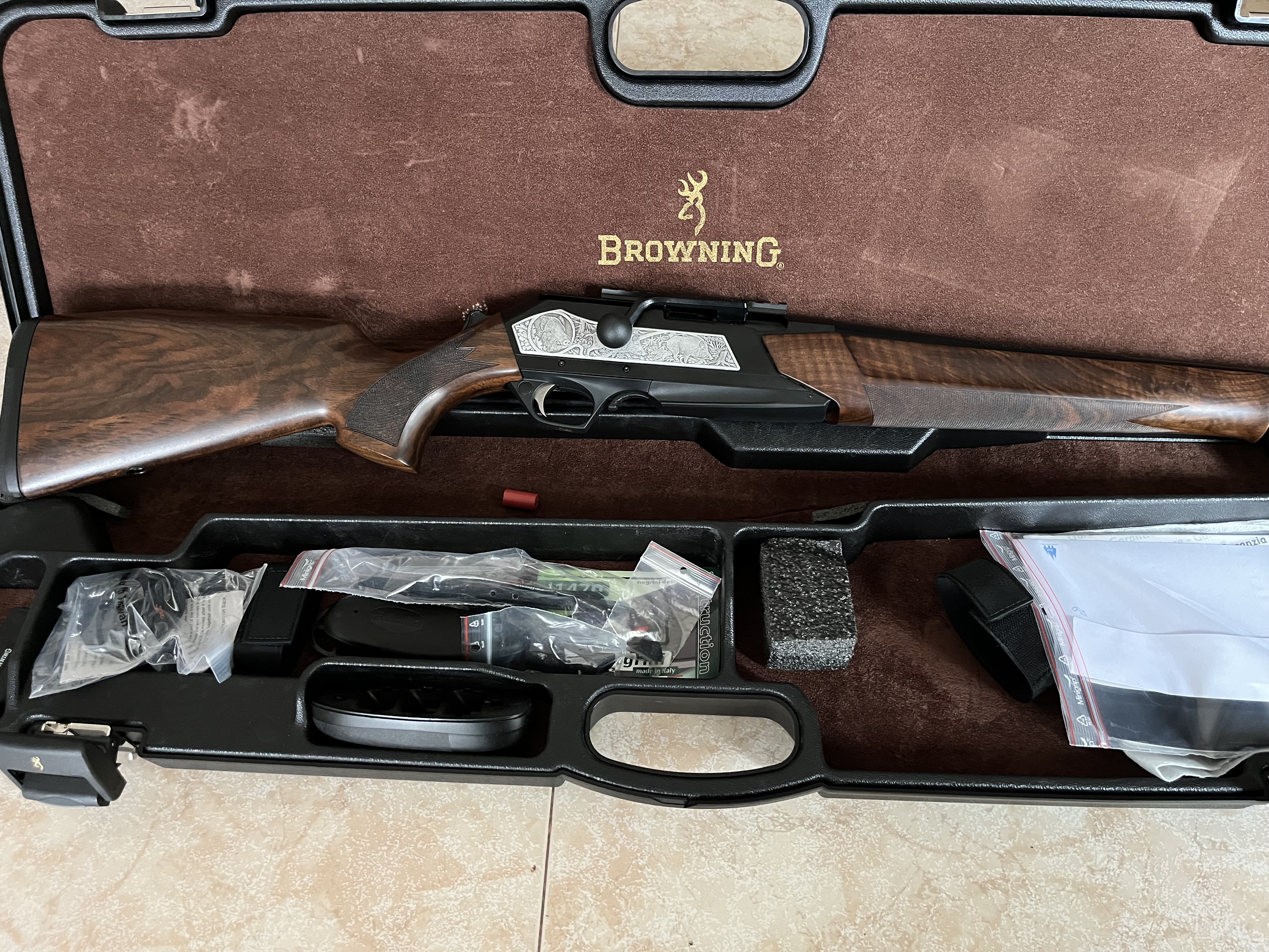 Browning maral big game. Calibre 30-06. Incluye maletín cargador extraíble de cinco balas. Con carril picattiny. El Rifle está completamente nuevo ha pegado 7 tiros para probarlo, nada más.