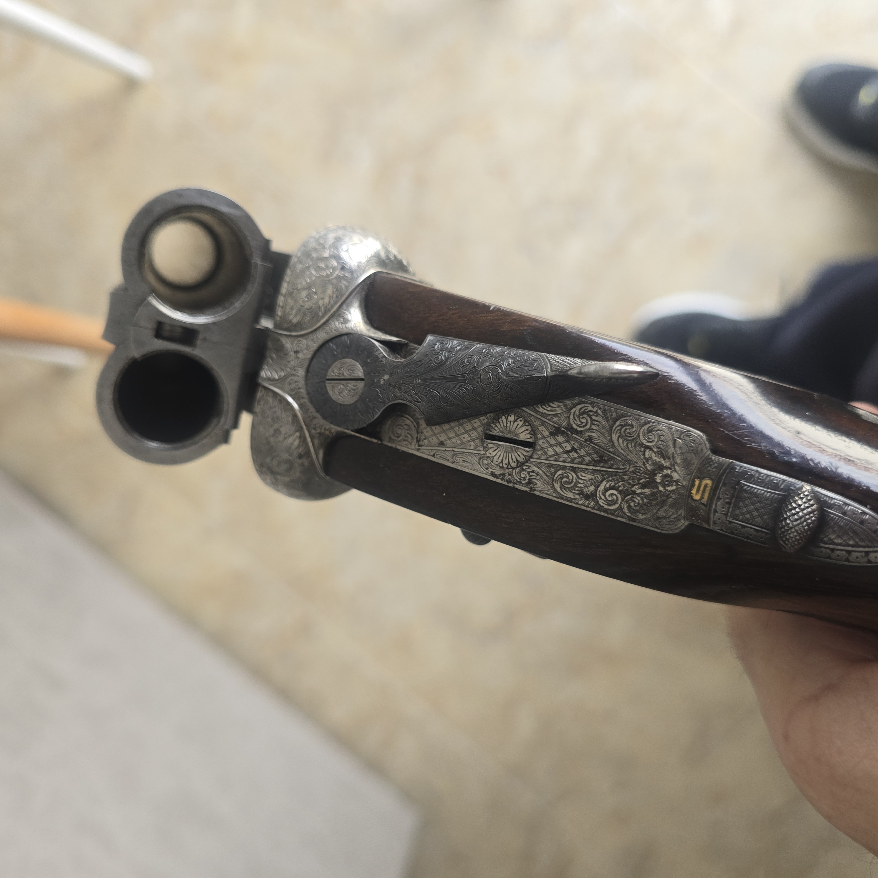 Escopeta paralela grulla, con dos juegos de cañones