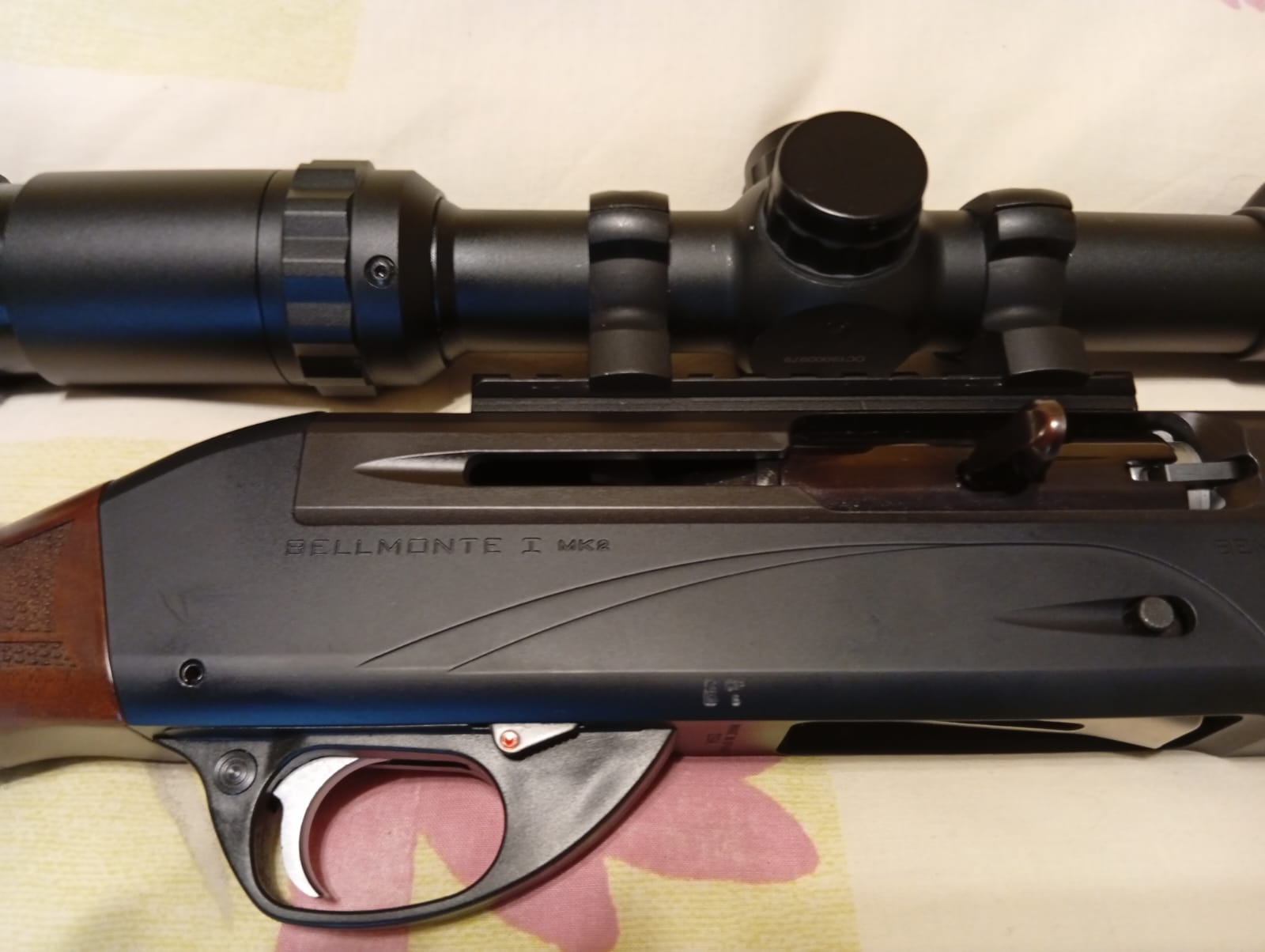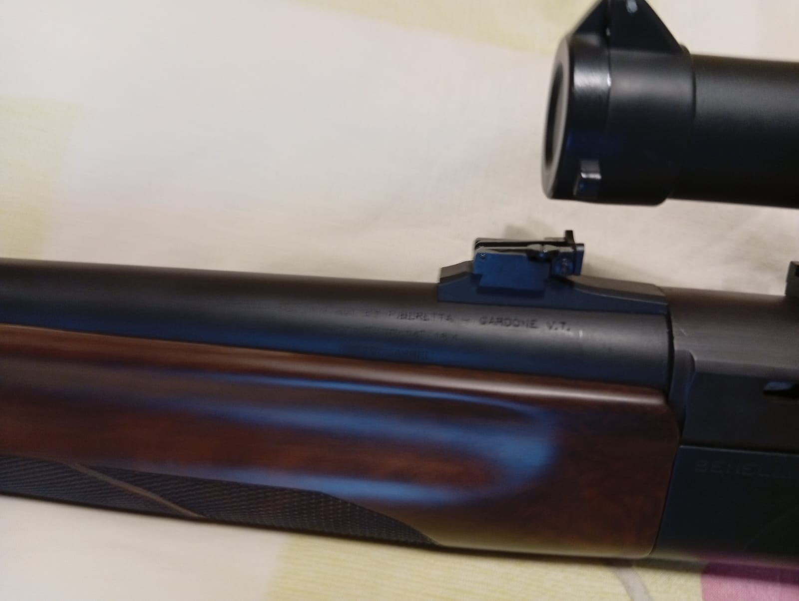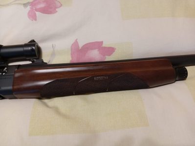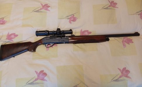 Escopeta semiautomática Benelli MK Slug – cañón estriado- con visor, con monturas desmontables, base Weaber, alza y punto de mira regulables. Se ha usado en tres monterías. Esta prácticamente nueva. Se entrega todo junto y regalo 4 cajas y media de balas Sauvestre y tubo para llevar el visor desmontado y funda para la escopeta,
