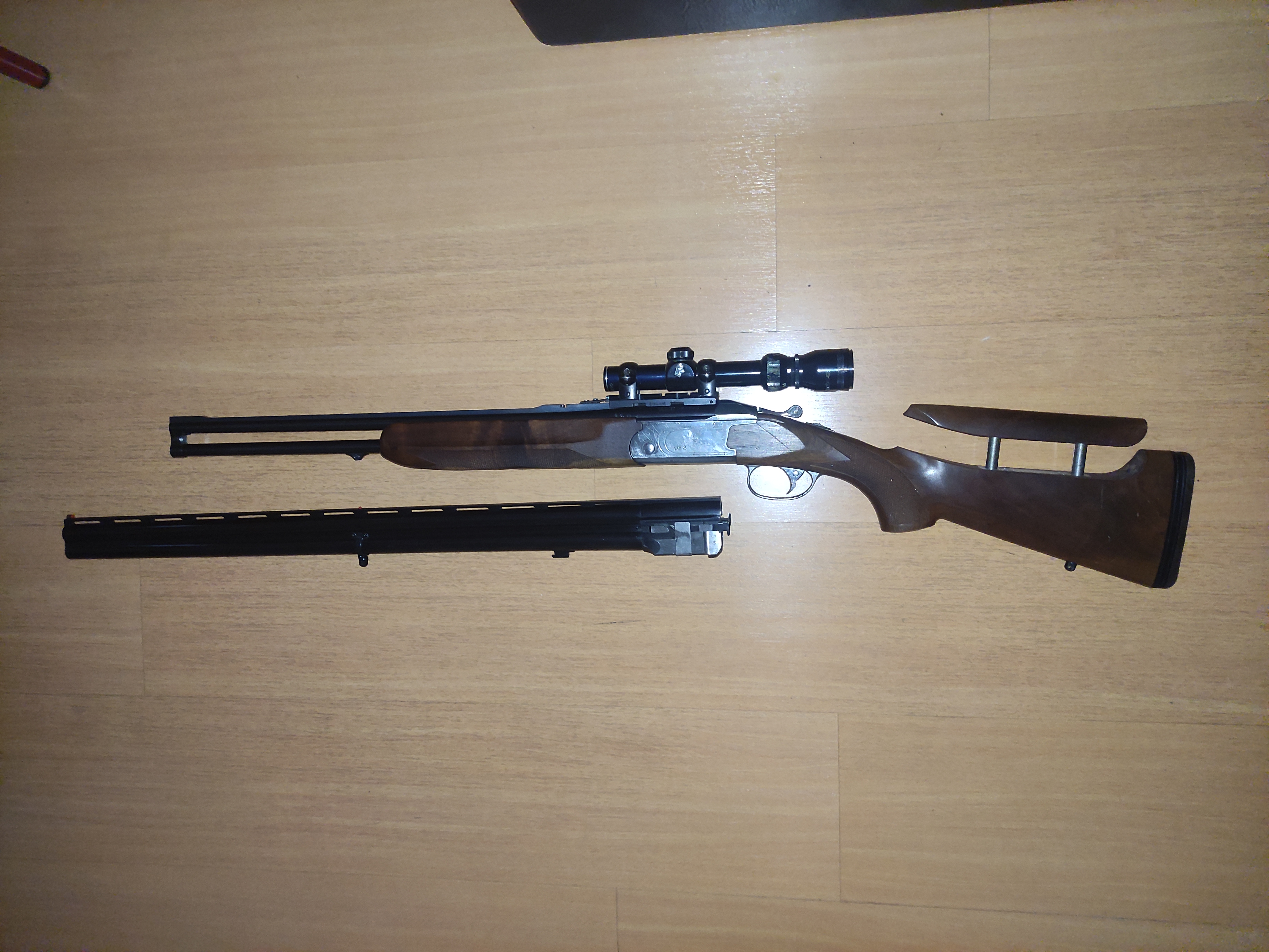 Rifle Expres TIKA 412S ca. 30-06, cañones regulables en altura i deriva, selector de disparo, carrillera regulable,cañon adicional cal. 12.
